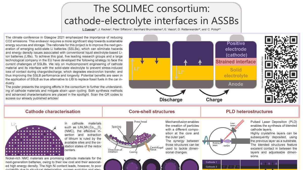 The climate conference in Glasgow 2021 emphasized the importance of reducing CO2 emissions. This endeavor requires a more significant step towards sustainable energy sources and storage. The rationale for this project is to improve the next generation of emerging solid-state Li batteries (SSLBs), which can eliminate hazards and energy density issues associated with conventional liquid electrolyte-based Li-ion batteries (LIBs). To achieve this goal, five leading research groups and a large technological company in the EU have developed the following strategy to face the current challenges of SSLBs. We rely on multicomponent engineering of cathode material and its interface with the solid-state electrolyte to prevent stress-induced loss of contact during charge/discharge, which degrades electron/ion transfer, and thus improving the SSLB performance and longevity. Potential benefits are seen in the application of SSLB as true alternative to LIB to replace fossil fuels in the car industry.Project Details